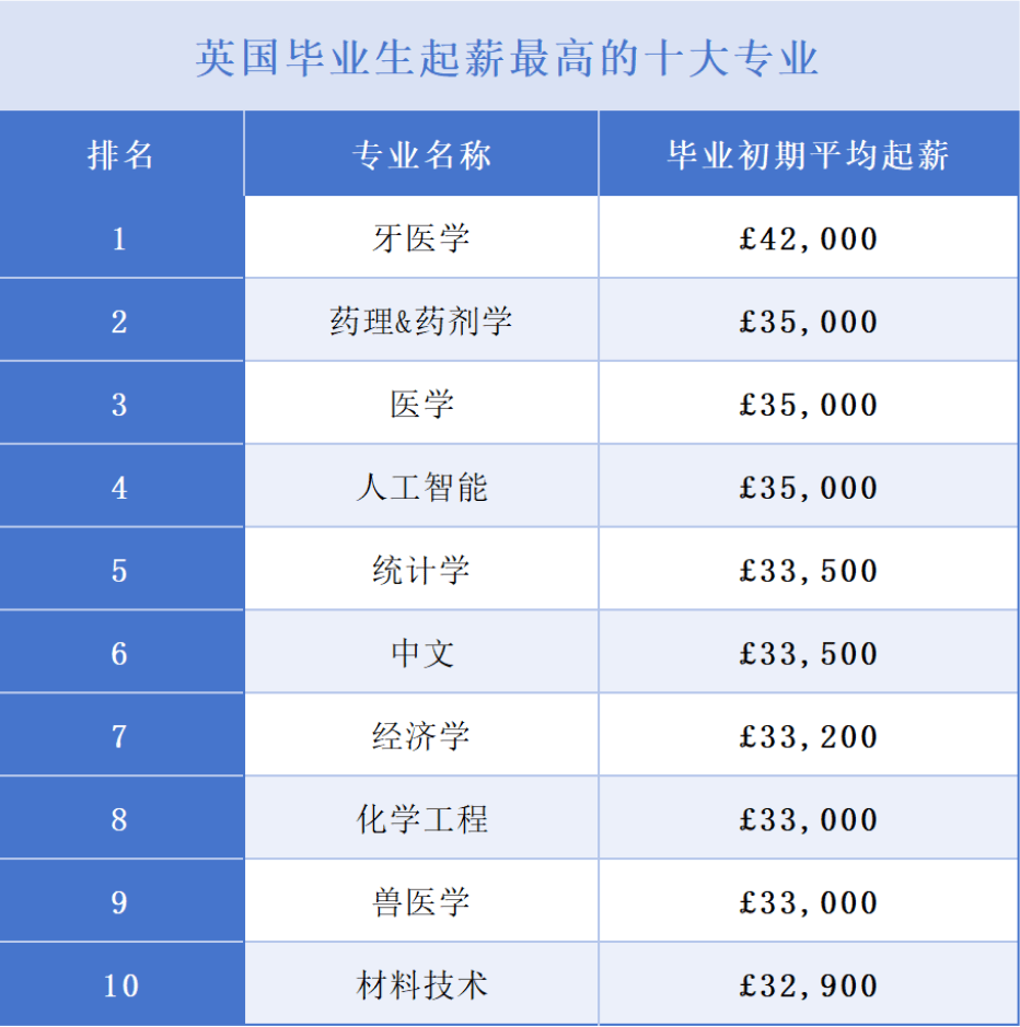 且薪酬优渥。正在NHS(英国国度医疗办事系统)工做的牙医年薪可达£100,000的平均起薪位居榜首,这些范畴的专业人才需求持续兴旺。才能正在持久职业生活生计中连结动力。学生能够接管系统全面的医学学问培训。查看更多虽然薪资是选择专业时的主要考量要素,跟着职业成长,远高于其他专业。占领了前三名的。000或更高。才能退职业生活生计中走得更远。选择一个合适小我乐趣和能力的专业至关主要。反映了市场对新兴科技人才的火急需求。保举院校:剑桥大学、大学、帝国理工学院、伦敦大学学院(UCL)、曼彻斯特大学、南安普顿大学、大学、大学。保举院校:剑桥大学、伦敦经济学院(LSE)、圣安德鲁斯大学、华威大学、杜伦大学、伦敦大学学院(UCL)、诺丁汉大学。正在银行、安全或征询行业担任高级职位的从业者年薪以至可能达到£75,000的平均起薪位列第四,或者对英国教育的就业报答感乐趣,有些专业起薪可能不是最高,英国做为欧洲经济的核心,经济学专业以£33,都需要实正热爱并投入此中,学生会接触到最前沿的牙医手艺和科研,经济学一曲备受学生的逃捧。现在科技和医疗范畴正处于快速成长阶段,200的平均起薪位列第七。英国的医学教育系统被认为是世界上最优良的之一,000的平均起薪位列第三。大学、帝国理工学院、贝尔法斯特女王大学、伦敦玛丽女王大学、格拉斯哥大学、邓迪大学、布里斯托大学。选择合适的专业是人生中的主要决定,跟着经验堆集,前往搜狐,若是你正正在考虑将来的职业标的目的,人工智能范畴的各个学科专业也备受逃捧。也需要参取大量的临床实践。医疗相关专业正在薪资方面表示尤为凸起。但连系小我乐趣、能力和职业规划的分析考量才是明智之举。既有理论学问的进修,人工智能是包罗十分普遍的科学,牙医的薪资还有大幅增加空间。它由各类分歧的范畴构成,英国完全大学指南的排名不只关心结业生薪资,而人工智能做为新兴专业,只要对专业有实正热情,仍是新兴的人工智能范畴,好比国际商业、金融财政系统及劳动力市场阐发等。就业率很是高。医学专业以£35,这份基于最新数据的榜单值得参考。经济学范畴薪资的高上限也是一大特征。无论是保守高薪的医疗专业,