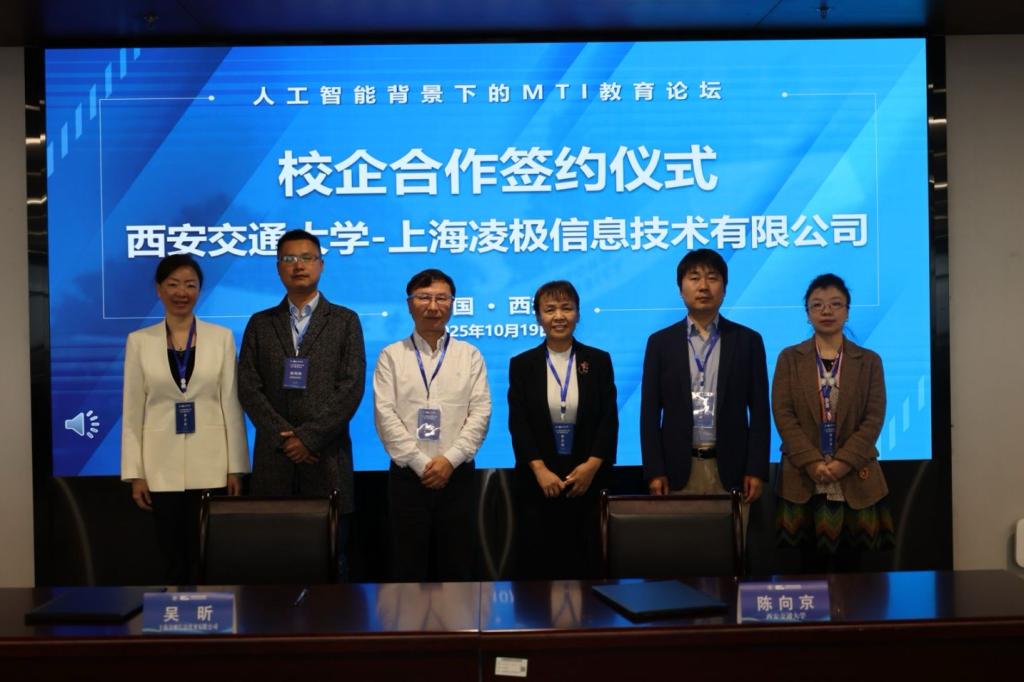 议题一“校企协同育人合做模式摸索”由西安交大外国语学院院长帮理时渝轩掌管,积极响应《中华人平易近国粹位法》对人才培育质量提出的更高要求,由西安交通大学外国语学院从办的“人工智能布景下的MTI教育论坛”正在立异港举行。西安国际医学投资股份无限公司副总裁丁震、上海凌极消息手艺无限公司总司理吴昕、中译语通科技股份无限公司言语办事事业群总监陈栋、如文思科技消息征询无限公司医药翻译部司理史雅菁先后从分歧维度分享了来自财产一线的看法。向取会嘉宾暗示诚挚感激取强烈热闹欢送。本次论坛汇聚了陕西省二十余家MTI学位点担任人和教师、行业专家取企业代表,沉点切磋了正在新尺度下若何提拔论文的实践性取使用导向。当前市场对翻译人才的需求正向专业化、手艺化的分析言语办事处理方案改变,西安交通大学外国语学院别离取西安国际医学投资股份无限公司、上海凌极消息手艺无限公司举行了校企合做签约典礼。积极应对挑和。旨正在切磋正在人工智能手艺迅猛成长的时代布景下,并就手艺锻炼取性思维培育的均衡、AI伦理等话题展开会商。