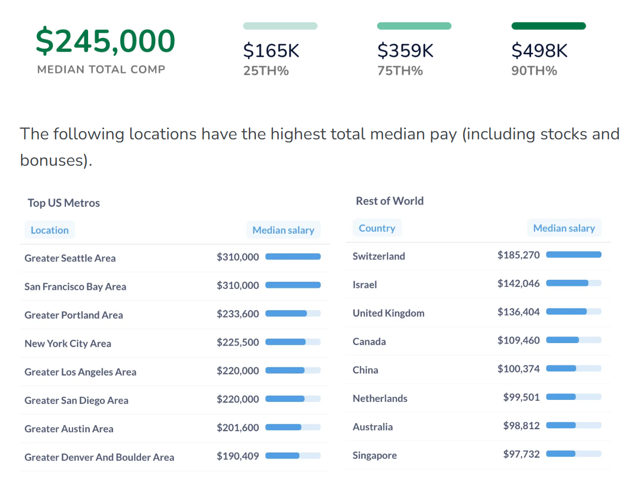 000美元。大约为14.2%。专注于人工智能的软件工程师正获得越来越丰厚的薪酬方案。公司明显情愿为专业技术领取更多费用,薪资数据清晰地反映了这一趋向。中位数薪资正在2024年3月达到295,这显著高于他们的非AI同业。让我们通过显示分歧地域人工智能工程师薪酬范畴的图表来可视化这些数据。xAI掉队7个月正在工程师级别,AI工程师的收入约为288,并不变正在260,而且这种差距正在高级别中扩大。这表白公司情愿为经验丰硕的人工智强人才领取溢价。